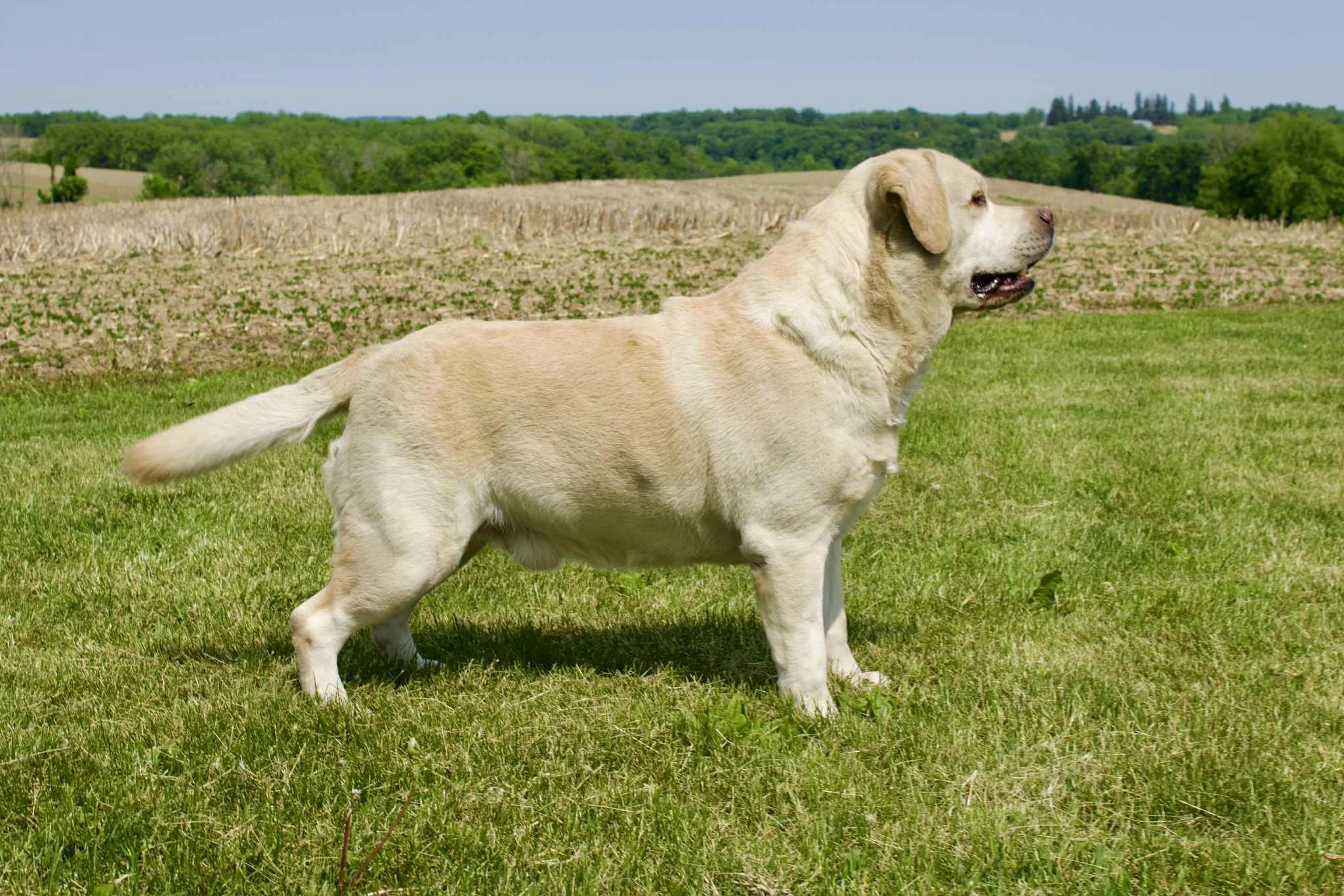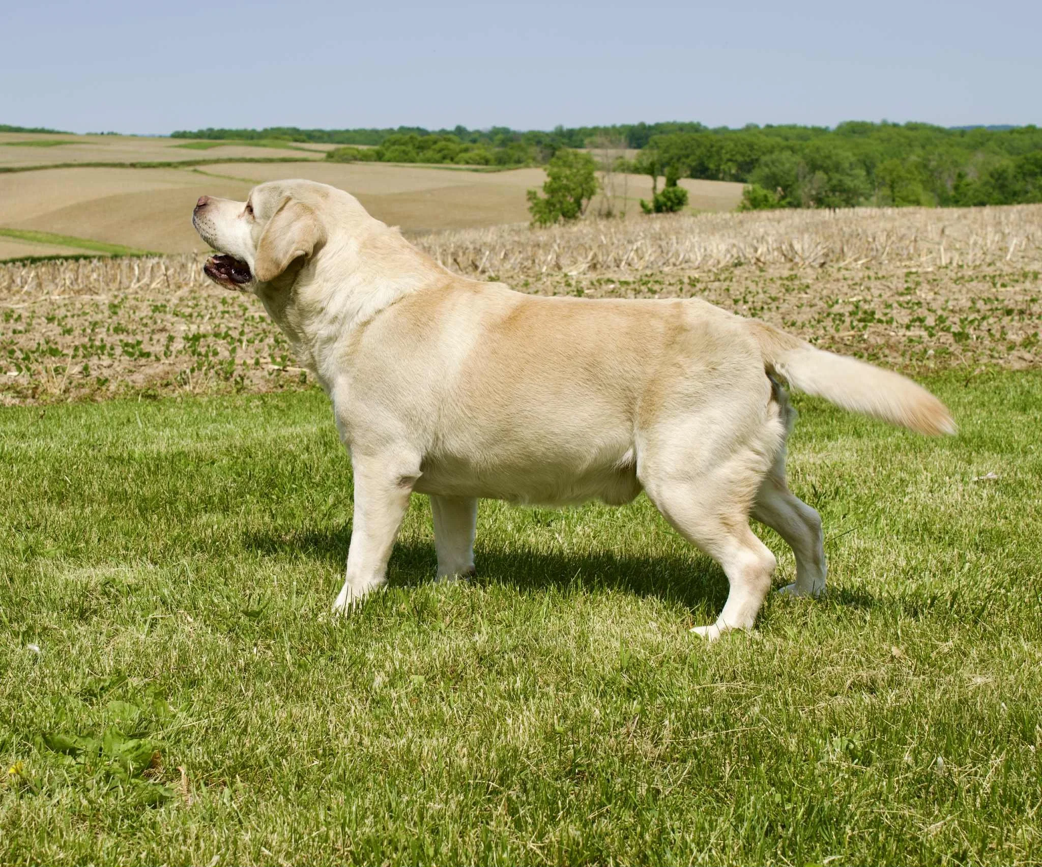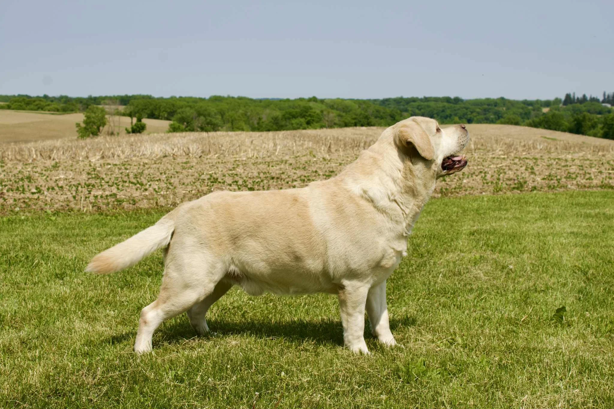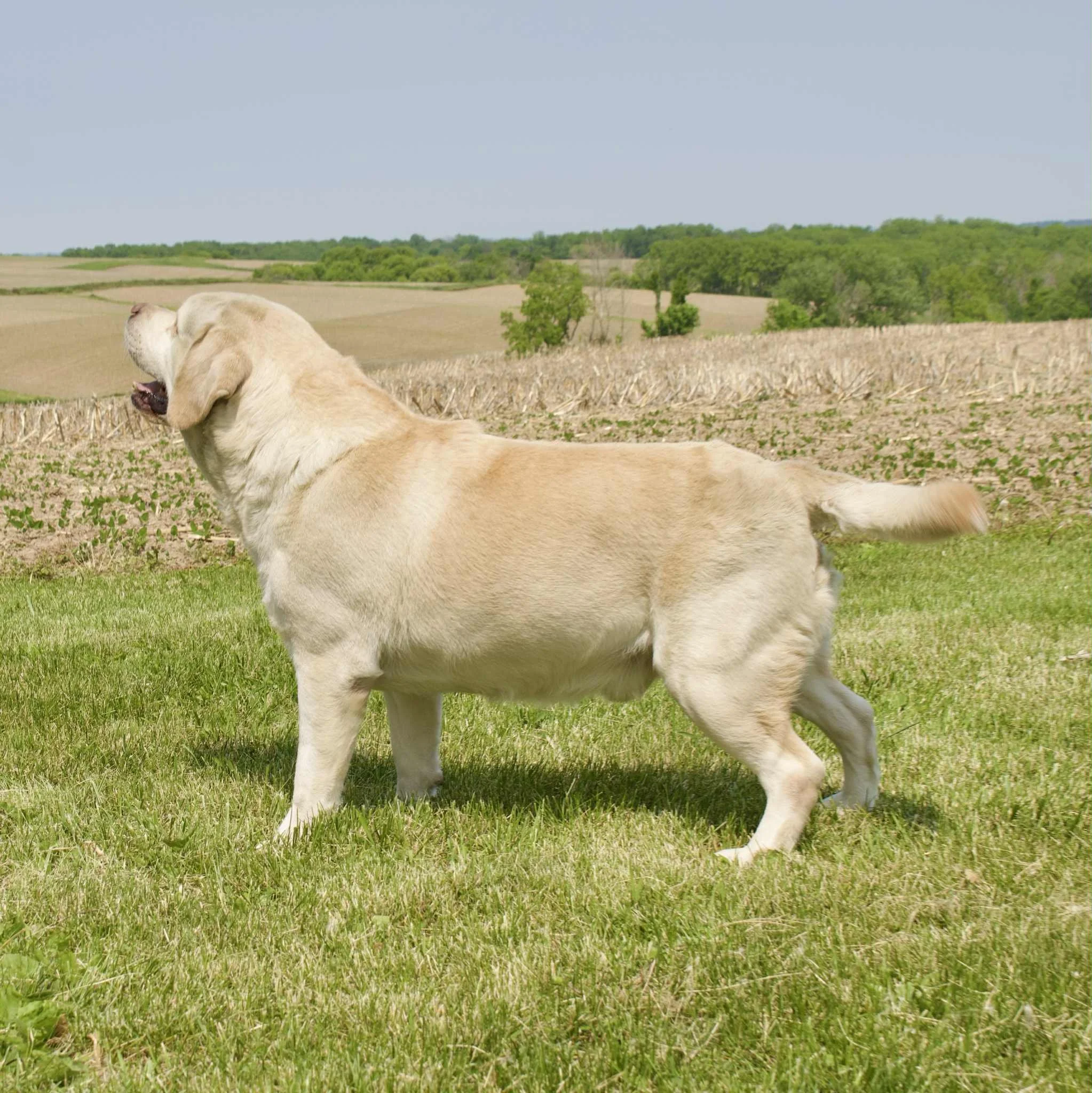 Dozer and his name appropriately fit him. He is square, blocky, stocky, and compact in his stance. With a large, true bench style blocky head, large chest, thick barrel, and fluffy otter tail he is the ideal standard representation of the English style Labrador Breed. He is steady in all adventures of his life and enjoys traveling. Boasting 20 Champions in his four-generation pedigree, we are super proud to showcase this handsome guy. Height: 24 inches.