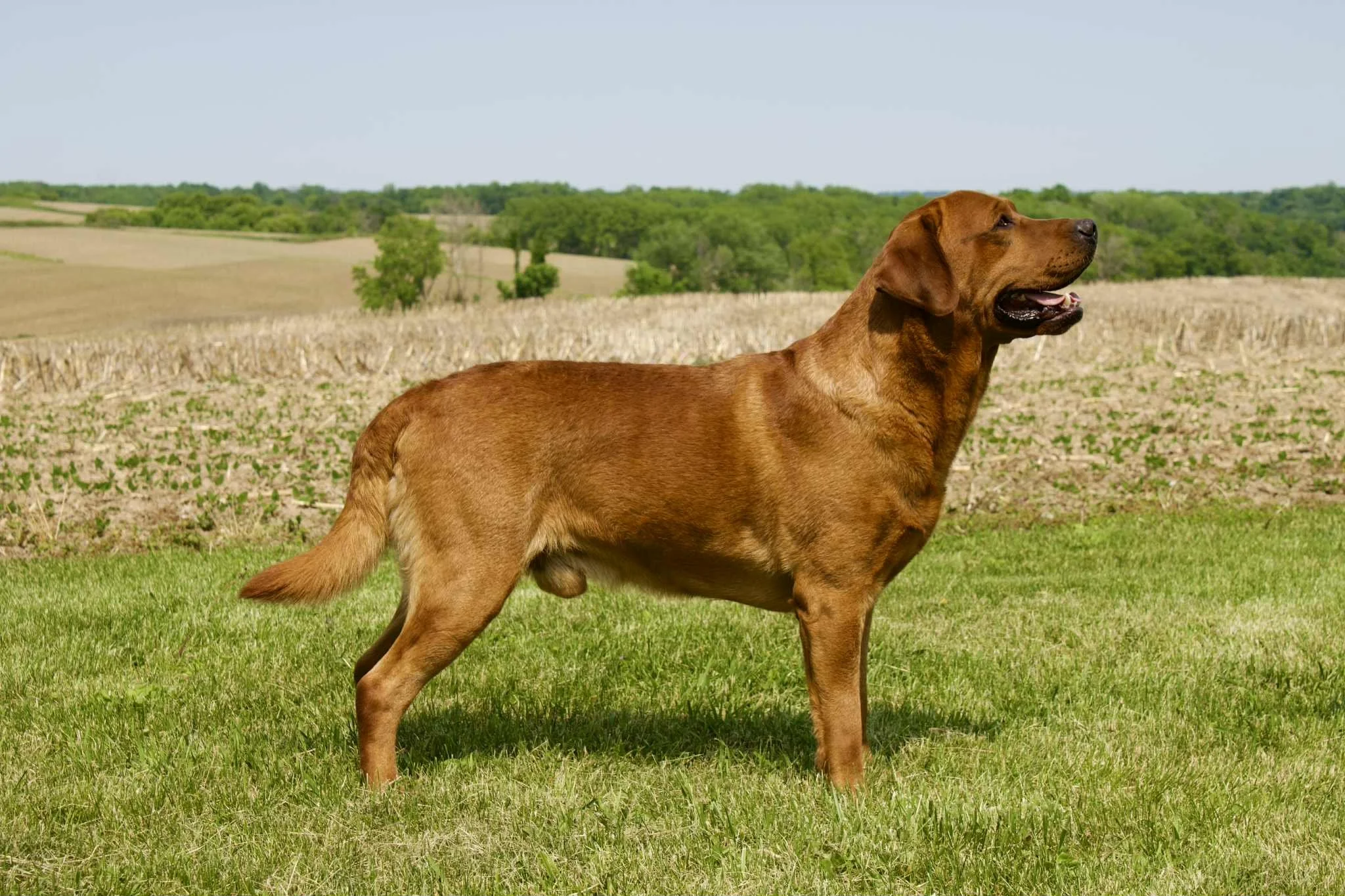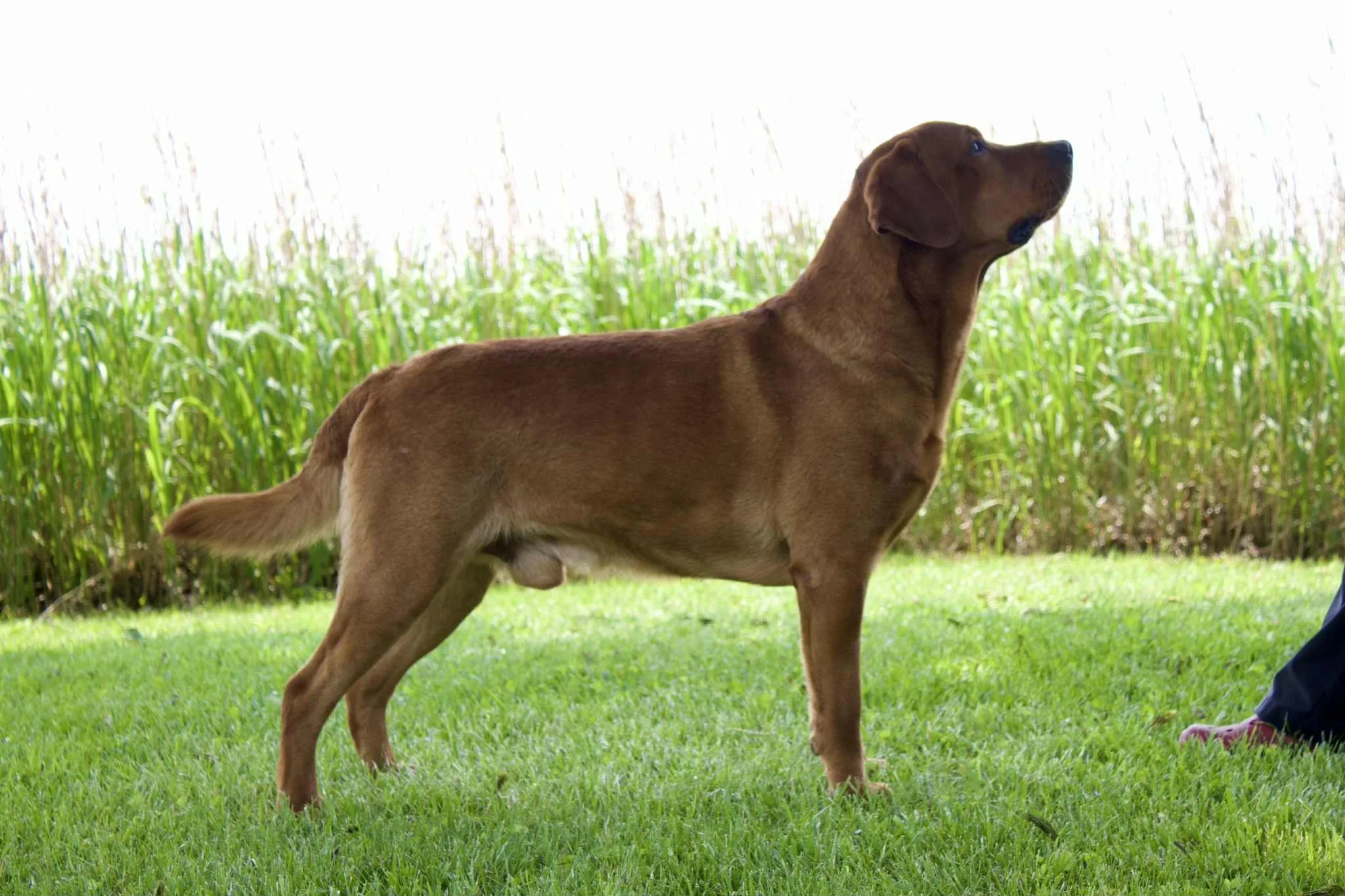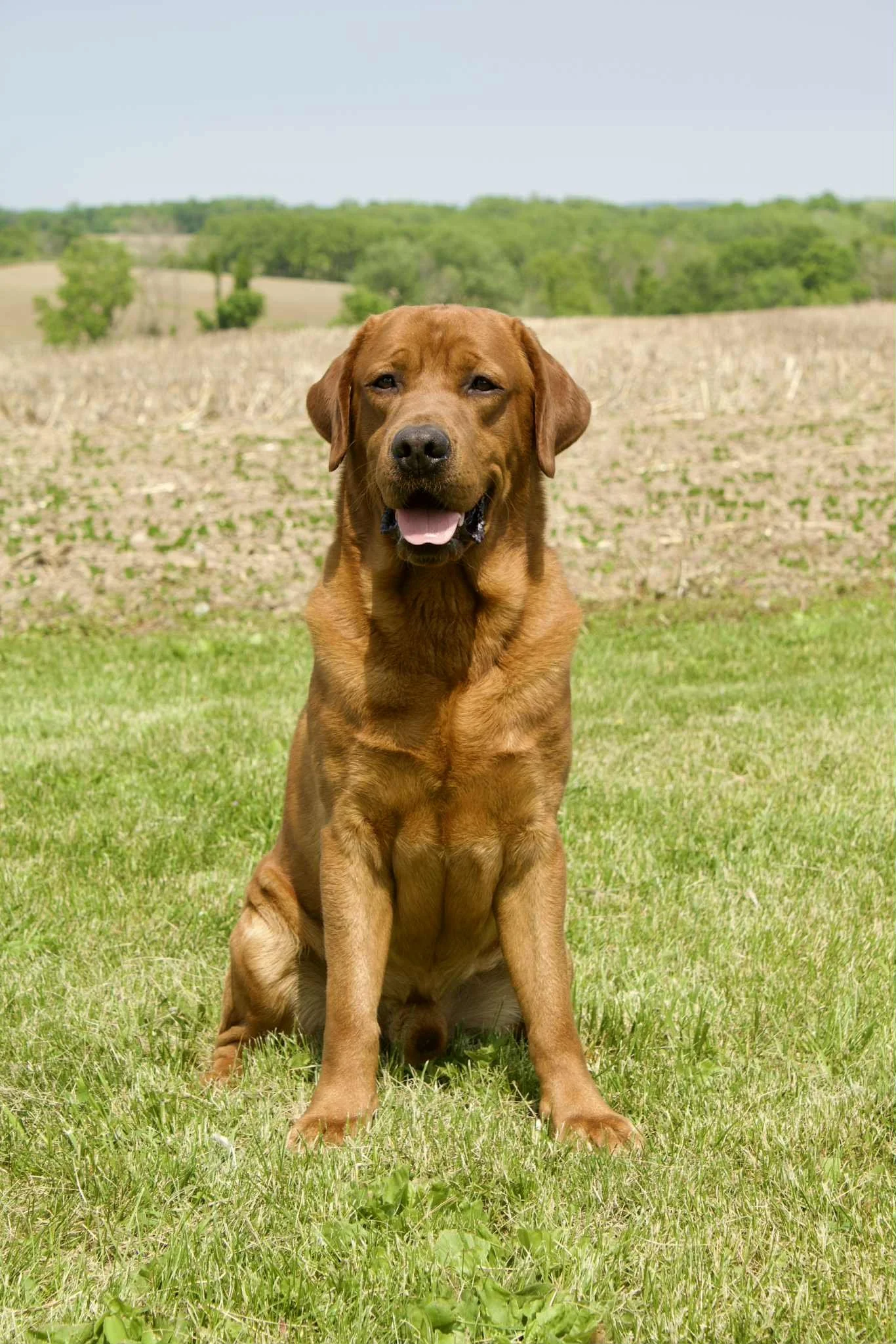Rooster is a friendly and you will fall in love with his gentle demeanor, kind soft eyes, and stunning coat. He is known for his attractive blocky head and framing ears that make him a standard representation of the English style Labrador Breed. He is steady in all adventures of his life and enjoys traveling. Boasting -- Champions in his pedigree, we are super proud to showcase this handsome guy. Height: 24 inches.